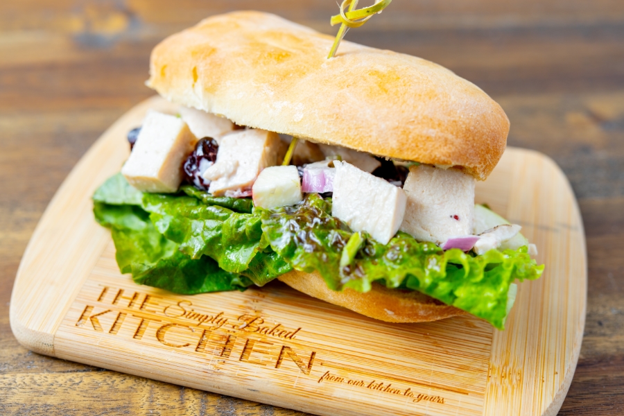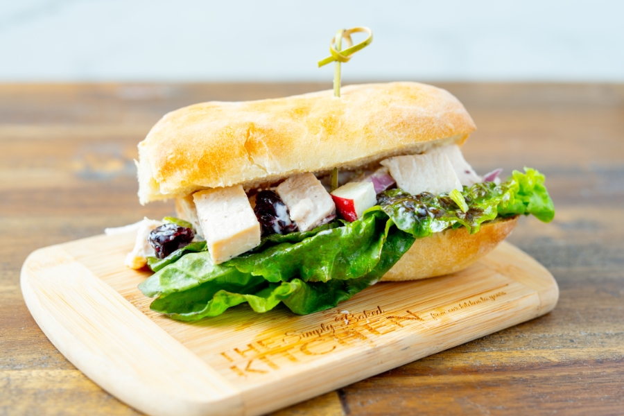 Chicken, celery, apple, onion, dried cranberries, red pepper, mayonnaise, lettuce, spices