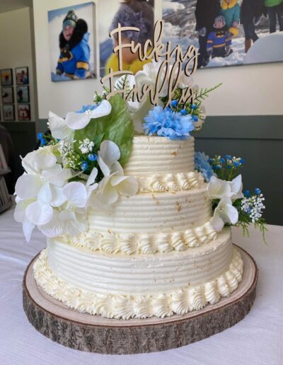 We are renowned locally for creating bespoke wedding cakes that are both stunning and delicious. Whether you want a towering 3-tier masterpiece, or a simple but elegant smaller wedding cake, we would love to create a cake for you to your exact specifications.